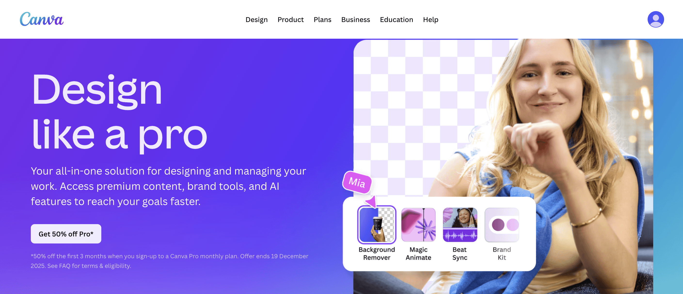 2. Canva Pro (with AI Tools) - Best for Fast Design + Flexible Templates