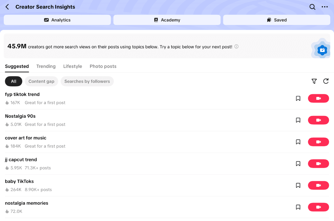 Check Creator Search Insights to see which keywords top creators in your space are using successfully.