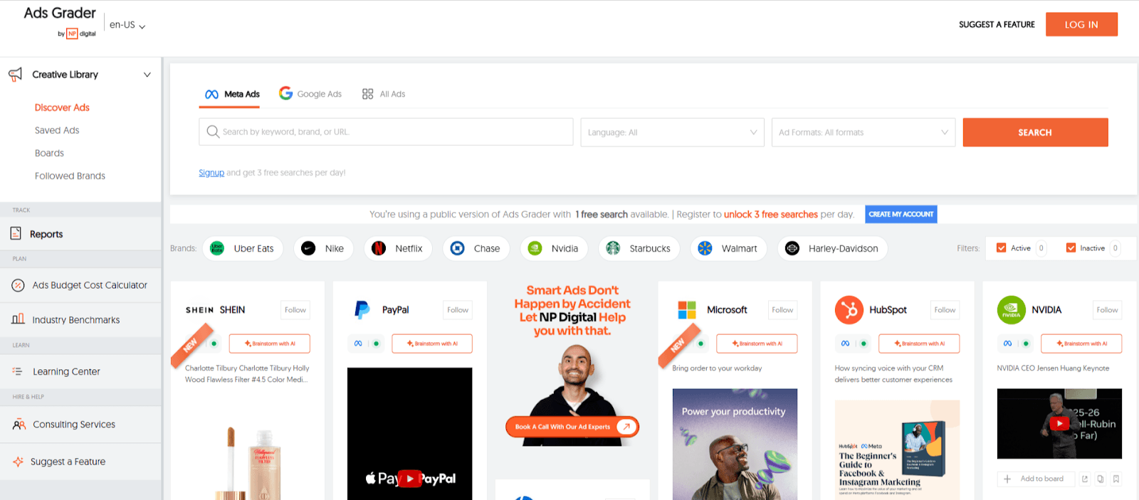 Paid tools give you more details, insights from historical data, spend estimates, and performance metrics.
